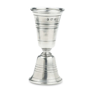 Curvaceous pewter double-jigger allows for both 1 and 1.5 ounce measures, with interior markers for half and three-quarters of an ounce, ensuring precise measuring when creating your favorite multi-ingredient cocktail.