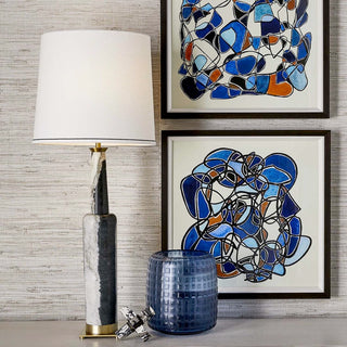 Atop the marble base sits a simple yet sophisticated lampshade, typically in a neutral color to accentuate the lamp's monochromatic theme. This shade diffuses light softly, providing a warm, inviting ambiance to any room. The combination of the sleek marble with the soft fabric of the shade exemplifies a balance of materials and textures. The Black & White Marble Tablelamp is not just a source of illumination but a statement piece, reflecting a refined taste and a penchant for minimalist yet bold design choices.