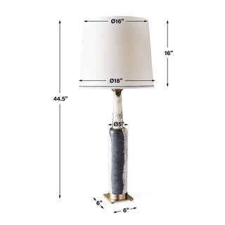 The Black & White Marble Tablelamp is a striking fusion of elegance and contemporary design. Its base, crafted from exquisite black and white marble, boasts a unique pattern where dark veins intersect with lighter hues, creating an artistic, natural tapestry. The lamp's cylindrical shape is both modern and timeless, allowing it to complement a variety of interior styles. This contrast in color and the smooth finish of the marble lend the piece a luxurious feel, while the polished surface reflects light subtly, enhancing its visual appeal.