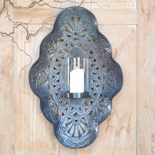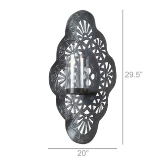 Black Iron Wall Sconce with Glass Hurricane - Large