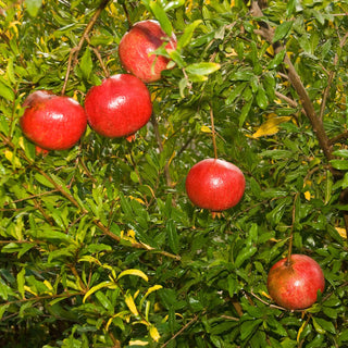 An improved variety with fount-like branches that produces large orange-red blooms in summer and large, delicious, burnished red fruit in early fall. A popular variety for making pomegranate juice. Beautiful and versatile, works well as a large shrub, small tree, or espalier. Fruits best in warm semi-arid climates.