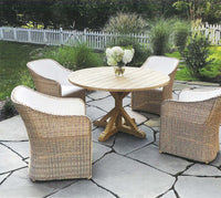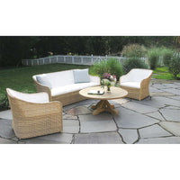 The Quogue Collection combines all-weather wicker with modern upholstered seating surface, eliminating the need for a cushion. Upholstered surfaces are made from durable, easy-to-care-for-Batyline mesh. Seats are gently padded with quick-drying reticulated foam and typically dry in as little as 20 minutes after rainfall.