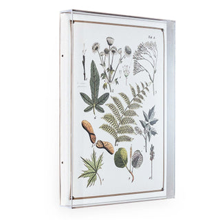 The artwork features a giclee print mounted under a 2.5" deep lucite shadow box. Attached to a linen wrapped interior panel, the artwork is finished with brass nail head in each corner.