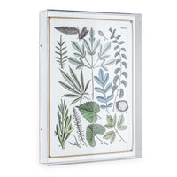 The artwork features a giclee print mounted under a 2.5" deep lucite shadow box. Attached to a linen wrapped interior panel, the artwork is finished with brass nail head in each corner.