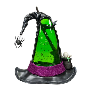 Cast a spell of enchantment this Halloween with the LED Witch Hat Water Lantern – standing at 11" tall, it’s the perfect potion of spooky charm and sparkling magic. As swirling glitter dances around inside the lantern, illuminated by an eerie LED glow, it brings a touch of witchy wonder to mantels, tabletops, or entryways. This bewitching piece adds just the right amount of haunting ambiance to your haunted house.