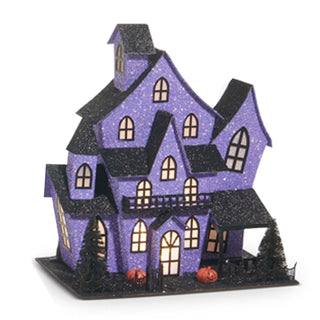 As the witching hour approaches, the LED Purple Haunted House - 13" casts an eerie, violet glow that transforms any space into a spine-chilling spectacle. Its ghostly silhouette, adorned with flickering LED lights, conjures visions of restless spirits lurking within. Perfect for tabletops or shadowy corners, this haunting centerpiece evokes the thrill of Halloween night, drawing guests into its mysterious aura.
