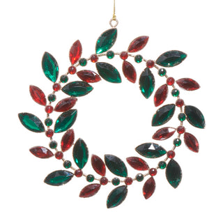Red Grn Jeweled Wreath Orn 6"