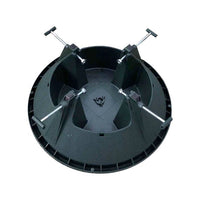 A popular and easy to use stand for cut trees that are up to about nine feet in height. Some especially heavy trees or those with large bases should use an even larger stand, such as a heavy duty, reinforced rebar stand.