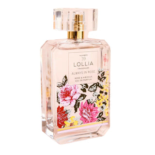 Discover Lollia’s Always in Rose Eau de Parfum. Endlessly enchanting, fragrant blossoms beckon. Blushing Rose unfurls with a breath of captivating beauty, cascading in a tangle of tranquil Hibiscus washed in warm Amber rays.