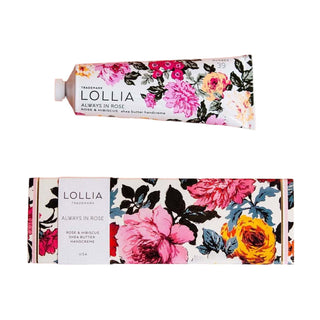 Rich with botanically lush ingredients, Lollia's Always in Rose Shea Butter Handcreme blends Macadamia Nut and Avocado Oils to comfort and soothe your skin. Beneficial hydrating extracts of Aloe and Shea Butter lightly moisturize while delicate infusions of blushing Rose, Hibiscus & warm Amber add a whisper of fragrance to this luxurious cream. Absorbs quickly to leave skin petal-soft. Design Details