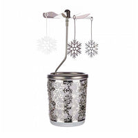 The glass is decorated with a beautiful metal motif of a winter town with a starry sky. Finely crafted metal comets are hooked into the propeller and rotate through the rising heat of a tea light. The warm, flickering flame of the tea light creates a pleasant atmosphere in the room. The glass carousel comes in a small package and can be assembled in just a few steps. A small description and a tea light are included.