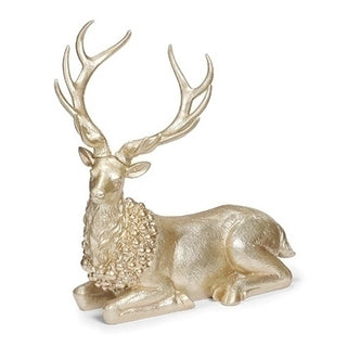 The Gold Glitter Deer Laying - 17" Tall is a stunning decorative piece that captures the magic of the holiday season. Its elegant form and shimmering gold finish add a luxurious touch to any home décor, making it a standout accent on mantels, under the tree, or as part of a festive centerpiece. The peaceful, resting pose of the deer brings a sense of calm and wonder to holiday gatherings.