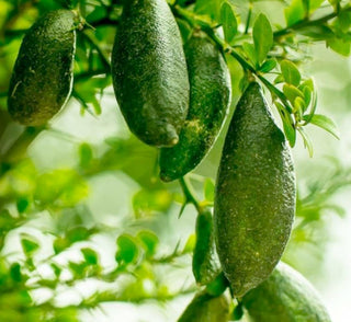 The Australian Finger Lime, also called "citrus caviar," is a unique citrus relative native to Australia. It grows as a thorny shrub or small tree, reaching 6-12 feet tall and 4-8 feet wide in cultivation (semi-dwarfs about 1/2 to 2/3 that size), and can be maintained even smaller in containers with yearly pruning. It produces elongated fruits containing tiny, tart, pearl-like juice vesicles. The main fruiting season in California is November-February, with some fruit year-round. Australian finger limes are self-pollinating, so they don't require cross-pollination. The flavor is intensely sweet-tart, like lemon-lime, with herbaceous undertones. They are generally seedless, although occasional seeds can occur. They thrive in full sun and well-draining, slightly acidic soil, and tolerate light frost onceÊestablished, needing protection below 32¡F. This variety is ideal for adding a gourmet touch to dishes, such as garnishing seafood, cocktails, and salads.Ê