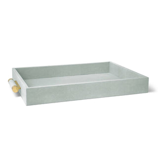 This serving tray features a delicately embossed shagreen pattern, while its brass handles add a luxurious feel. It is perfect for a casual gathering, an elegant dinner party or organizing personal objects.