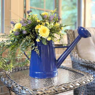 This watering can make indoor or outdoor plant maintenance quick and easy. Two Convenient top and side handles make it easy to carry and allow better control when watering your plants. Reduce and prevent trips to and from your watering source with this reputable garden tool! This sturdy watering can features a screw-on leak-proof sprinkler head to prevent leaks and keep your watering process tidy.