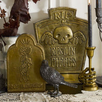 The Golden Duelo Tombstone – 13" is a striking addition to Halloween decor, instantly elevating the spooky ambiance with its eerie elegance. Crafted with intricate details, its weathered stone appearance and shimmering gold accents evoke a haunted, vintage graveyard vibe. Perfect for indoor or outdoor displays, this tombstone adds a touch of gothic charm to porches, mantels, or tabletops. Its compact size ensures versatility, fitting seamlessly into any Halloween setup, from creepy cemeteries to haunted house themes.