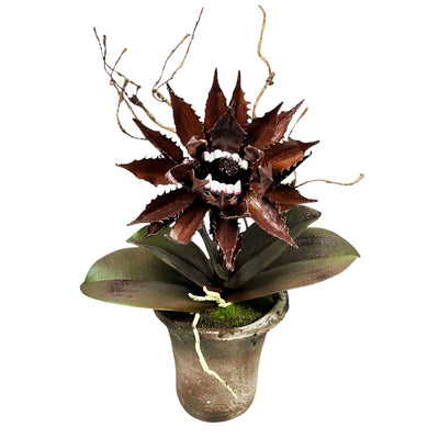 The silk Vampire Agave in a rustic clay pot brings a dramatic, eerie elegance to your Halloween decor. Its deep, moody tones and spiky silhouette evoke a mysterious desert night, making it a perfect complement to flickering candles, pumpkins, and gothic themes. Unlike real plants, it requires no maintenance—just bold, timeless style all season long.