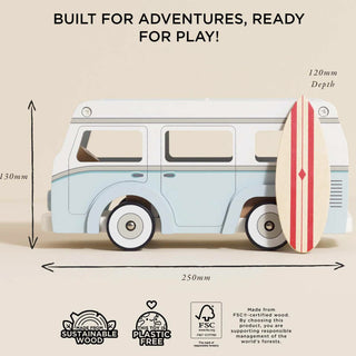 Hit the beach or enjoy a family road trip with this sweet, nostalgic toy, made for miniature holiday fun.