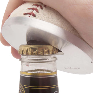 This bottle opener is crafted from an MLB Authenticated Game Used baseball, featuring the unmistakable red stitching and little scratches and scuffs that let you know it has seen game-play. An aluminum bottle opener finding is engraved with your team of choice's name. Officially licensed by Major League Baseball, a tamper-evident hologram sticker is adhered to each bottle opener to ensure authenticity. Each bottle opener comes gift-boxed with a Certificate of Authenticity.