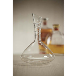 Give your home a luxurious addition with this lovely decanter. With the wide base and textured neck accent detail of the decanter, this is a beautiful piece of glassware. This sculptural decanter is a modern, elegant way to bring out the full flavors and aromas of your favorite whiskey or wine.