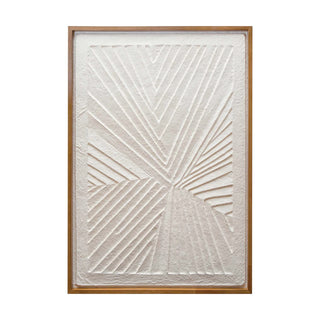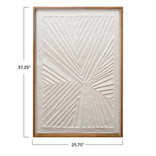 Oak Wood Framed Embossed Handmade Paper Wall Decor, Natural & Cream Color