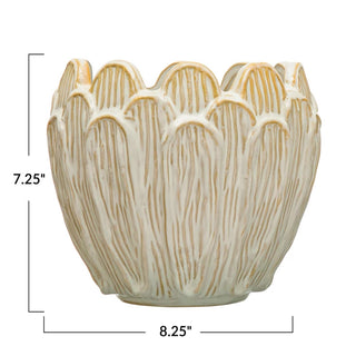 Debossed Stoneware Flower Shaped Planter, Reactive Glaze