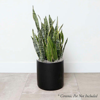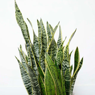 Sansevierias, or Snake Plants, are a classic easy-care houseplant that has gained popularity because of its architecturally linear leaves and variety of colors. Maintain your plant in moderate or poor light and do not expose to direct sunlight. Water every other week depending upon the time of year and the ambient temperatures. Keep soil evenly moist, but do not overwater. During active growth, you may use a mild liquid fertilizer at half or quarter strength. When re-potting, use an organic potting soil mix.