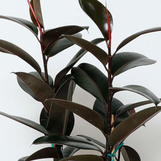 Ficus Burgundy is a striking variety of a Rubber Plant. Known for its rich burgundy leaves, it thrives as a house or patio plant in bright indirect light. Rubber plants are very sensitive to moisture, water only when the soil becomes dry for maximum growth. During active growth, you may use a mild liquid fertilizer at half or quarter strength. When re-potting, use an organic potting soil mix.