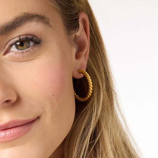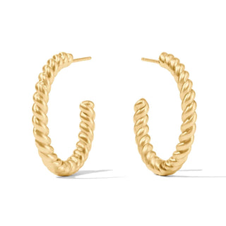 All Julie Vos jewels begin with traditional lost wax casting using nickel-free brass, which is then hand-worked with time-honored techniques including hand-hammering, soldering, stone setting, and polishing before being plated with warm 24K gold and sealed for durability. We source pearl and mother of pearl that meet exacting standards for shape, surface quality, and lustre, and our imported glass gemstones are selected for color, clarity, and brilliance.