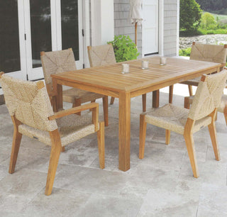 Hadley is a modern interpretation of classic 20th Century American furniture. Frames are crafted from premium Grade A teak using precise mortise and tenon joinery. Seating surfaces are handwoven in all-weather wicker designed to look like authentic rope. The woven portions feature a traditional triangular pattern, creating another layer of design. Deep seating units require cushions, while dining chairs are comfortable with or without cushions.