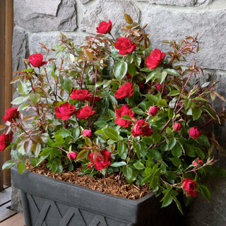 Upright bouquets of beautiful, fully double, red roses on fuss-free shrubs that will endure the trials of a long, hot summer with an unwavering blooming zeal. This own-root rose has outstanding disease resistance, is self-cleaning, and has proven to thrive coast to coast in heat and humidity as well as dry, hot summers. A dynamic hedge, barrier, or accent plant. Deciduous.