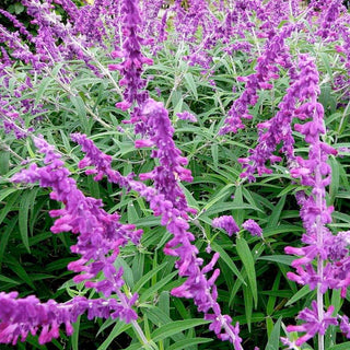 This hybrid sage was bred for long blooming and heat tolerance. Compact and tidy, growing 12 -14 inches tall and a bit wider. The fragrant foliage is topped with a profusion of nectar-rich, two toned flowers of deep rose-pink and creamy-white, summer into fall. The appealing, bold display attracts hummingbirds, butterflies and bees. Plant in full sun to light shade with moderate to occasional water. Makes a good container subject.