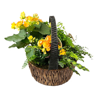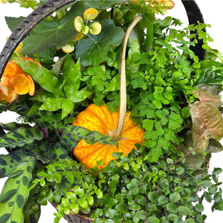 Embrace the warmth and beauty of autumn with our Festive Orange Fall Pumpkin Basket. Overflowing with vibrant orange blooms and lush seasonal greens, this charming arrangement captures the cozy spirit of the season. The pumpkin-shaped basket adds a delightful harvest touch, making it perfect for brightening entryways, dining tables, or cozy living room corners.