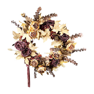 Faux Mauve & Tan Rose Maple Wreath - 18''