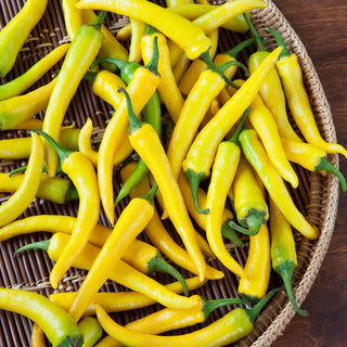This compact bush is perfect for container gardens. With fruits that ripen from green to golden yellow, they will add plenty of color and heat to your garden.