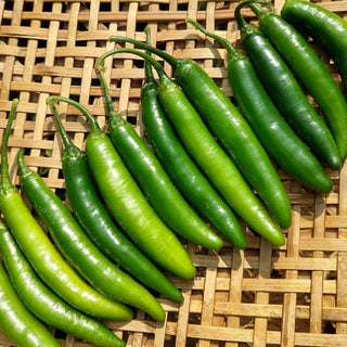 The thin, tapered fruit turns red when mature. Due to its thin skin, it does not need to be peeled before use.