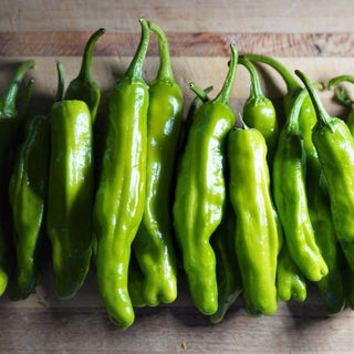 A Japanese chile pepper available year round, they offer a mild but distinctive heat. The pepper is small and finger-ling sized, slender, and thin-walled.