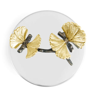 The Butterfly Ginkgo Collection celebrates the representation of flora as fauna. Michael's fascination with a particular type of ginkgo tree, the ginkgo Biloba, or "Butterfly ginkgo", which grows with a double leaf reminiscent of a butterfly's wings, gave rise to a fantasia image of the plant. Executed at the highest level of handcraftsmanship, each piece is rendered in solid bronze with acid etched cocoon-shaped vessels. The pieces in the collection are a tour de force of Indian craft and capture the poetic spirit that is so deeply indicative of Michael's work.