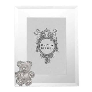 Celebrate cherished little ones with a touch of whimsical glam. Beveled mirrored glass frame, adorned with adorable teddy bear. Embellished with hand-set clear European crystals. Elegant moiré silk back. Tarnish resistant. Signature luxury gift box included.