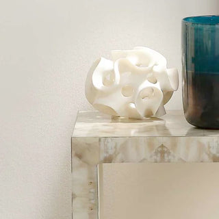The Ribbon Sphere is a stunning decorative piece that beautifully mimics the intricate look of sea coral, bringing a touch of coastal elegance to any home. Its flowing, ribbon-like design captures the organic beauty of the ocean, making it a perfect accent for modern, coastal, or nature-inspired interiors. Lightweight and versatile, it can be displayed on a shelf, table, or as part of a centerpiece.
