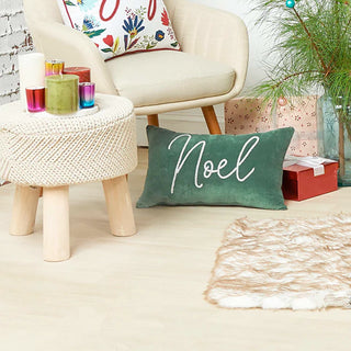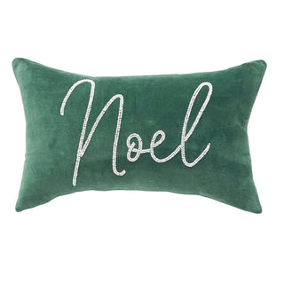 This bright and cheerful pillow is made of a vibrant jungle cotton velvet and features a hand-beaded seasonal greeting that will liven up any space.