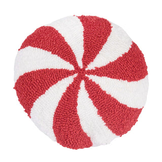 Sweeten up holiday decor with the Round Peppermint Hooked Mini Pillow. Designed in the shape of a classic peppermint, making it a fun and festive accent for any space. Its vibrant colors and intricate hooked details bring a burst of holiday cheer, perfect for livening up a living room or entryway with this cheerful piece.