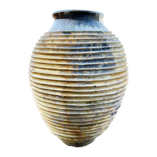 This large vintage olive oil pottery from Corfu, Greece, is a remarkable artifact that dates back over a century, embodying a rich history and craftsmanship. Originating from the scenic Greek island of Corfu, this pottery piece is traditionally used for storing olive oil, a staple in Greek culture and cuisine. The pottery showcases the classic Mediterranean aesthetic with its robust and curvaceous form, often characterized by a wide base tapering up to a narrower neck. This design not only exemplifies the practicality in storage and preservation of olive oil but also reflects the artistry of Greek potters who skillfully crafted these vessels by hand, making each piece unique.