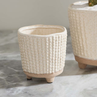 The Elias Ivory Footed Pot – 6" Tall is a timeless accent that effortlessly elevates any space. Its soft ivory finish offers a warm, neutral tone that complements both modern and traditional interiors, while the elevated footed base adds subtle architectural interest. Perfectly sized for shelves, side tables, or kitchen counters, this versatile piece brings balance and refinement without overwhelming your décor. Its clean silhouette allows it to blend beautifully with layered textures, natural woods, and seasonal accents.