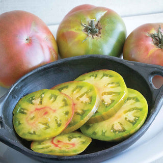 The Captain Lucky Tomato is a distinctive and treasured heirloom variety, known for its intriguing history and exceptional flavor. This indeterminate tomato plant produces medium-sized, round fruits that are characterized by their striking, deep purple skin with green shoulders. As they ripen, these tomatoes transform into a rich, reddish hue with a unique marbled appearance. The Captain Lucky Tomato is renowned for its delicious, well-balanced flavor that combines sweetness with a slightly tangy undertone, making it a versatile choice for salads, sandwiches, and culinary creations.
