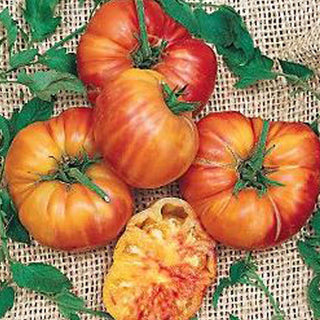 The Big Rainbow Tomato is a visually stunning and flavorful heirloom variety that is prized in gardens and kitchens alike. This indeterminate tomato plant yields large, beefsteak-style fruits, known for their impressive size, often weighing over one pound each. The most striking feature of the Big Rainbow Tomato is its coloration; the fruits exhibit a vibrant blend of orange, and yellow, often with a beautiful marbled or streaked pattern. This multicolored appearance not only makes them a showstopper in any garden but also adds an eye-catching element to culinary dishes.