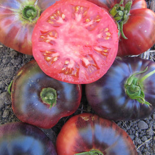 The Blue Beauty Tomato is a captivating and unique heirloom variety celebrated for its striking color and exceptional flavor. These indeterminate tomatoes are known for their medium to large size and distinctive blue-purple skin, making them stand out in any garden. The interior flesh is a vibrant, reddish-pink, creating a stunning contrast. The Blue Beauty Tomato offers a rich, sweet flavor with a slight tanginess, delivering a delightful taste that is perfect for fresh salads, sandwiches, and sauces. Its captivating appearance and delicious taste make it a favorite among gardeners and culinary enthusiasts alike.