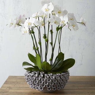 The Navy Iris Bowl – 18” is a striking statement piece that effortlessly elevates any room. Its rich navy hue brings depth and sophistication, while the graceful iris-inspired form adds an artistic touch. At 18 inches, it’s perfectly sized to anchor a dining table, console, or coffee table without overwhelming the space. Whether displayed on its own or filled with seasonal accents, this bowl draws the eye and sparks conversation.