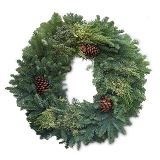 Crafted with utmost care, our Mixed Wreath with Cones stands out for its exceptional quality, ensuring a vibrant and long-lasting addition to your holiday decor. Experience the essence of freshness as you welcome the fragrant beauty of our meticulously chosen botanicals, a testament to our dedication to delivering unparalleled greenery for your home.