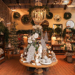 Celebrate the spirit of Christmas with Sparkle, Shimmer, and Shine! Explore our refined palette of apricot gold and pewter green decor, accented with twinkling lights and sparkling crystals. Cedar garlands, elegantly adorned with crystals, add a contemporary touch. Bring Christmas to life with our handpicked collection of ornaments, garlands, wreaths, and gifts. Let our beautiful displays inspire your holiday decorating and fill your home with timeless elegance. Join us for an unforgettable Christmas Boutique experience and let your holiday celebrations sparkle with warmth and joy!